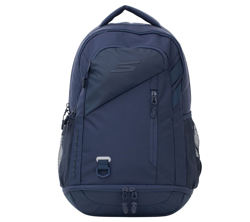 Organize your essentials in sporty comfort and support with Skechers Expedition Backpack. This multi-compartment backpack can fit a laptop measuring 17 inches in size and features a zipped front compartment with internal organizer, mesh water bottle pockets, and an ergonomic padded back panel with supportive TPU shoulder straps.